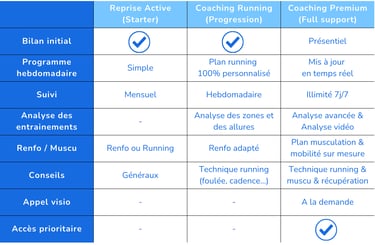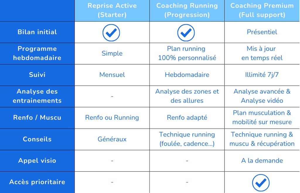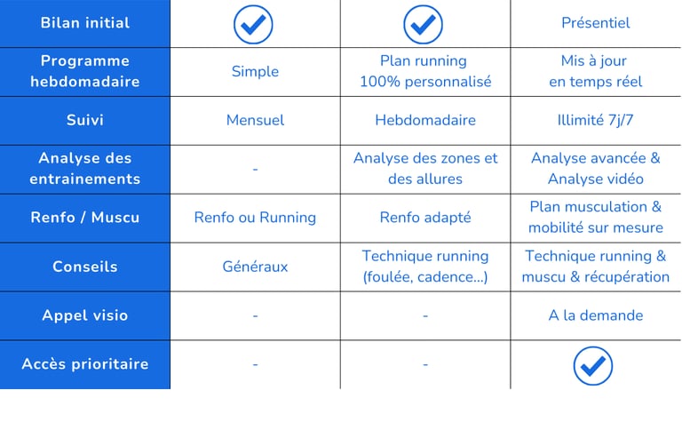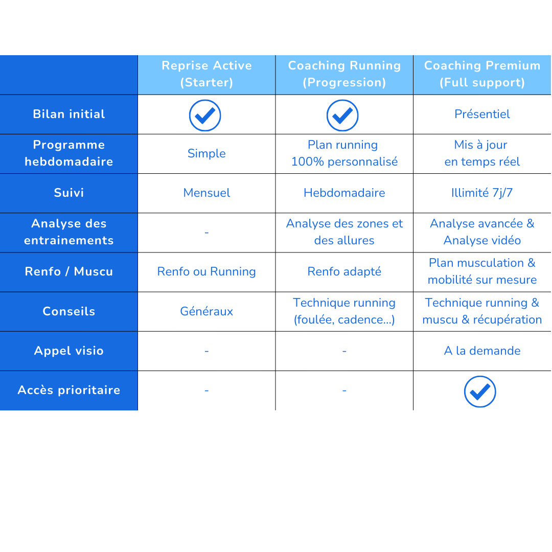 Que tu souhaites reprendre une activité physique ou réellement progresser en running, nous t’accompagnons avec un suivi personnalisé et quotidien.